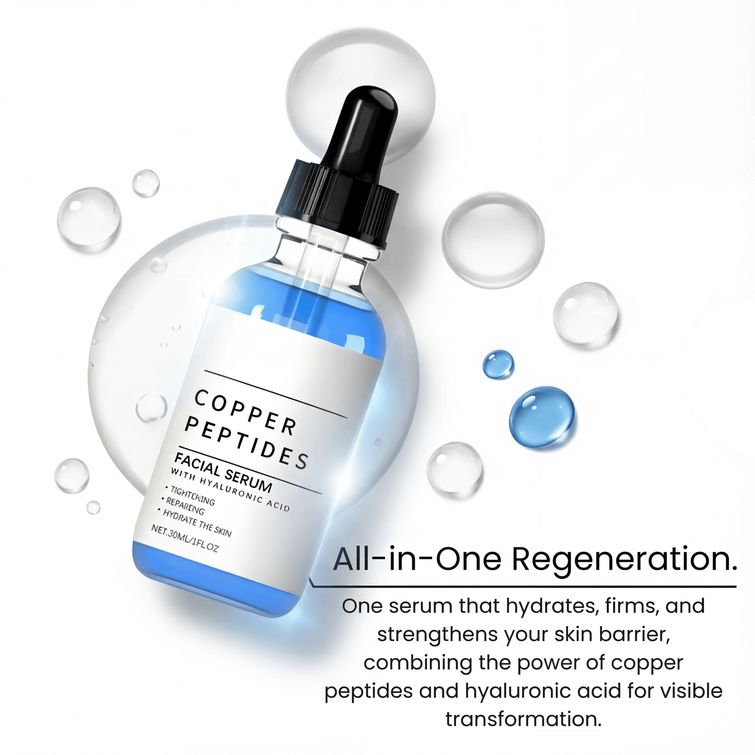 Copper Tripeptide-1 is a bioactive peptide found naturally in human plasma. It's a key compound for skin quality improvement - boosts collagen density and elastin, enhances skin thickness and firmness, speeds up tissue repair, and minimizes wrinkles. A proven ingredient for leveling up your skin and facial aesthetics.